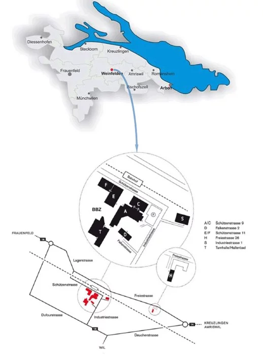 Bei Anreise per ÖV wenden Sie sich am Bahnhof nach Westen Richtung Frauenfeld. Die Mechanischen und Verbindungstechnischen Kurse finden an der Hermannstrasse 21 im LMB Gebäude statt. Sie erreichen dieses in circa drei Gehminuten.