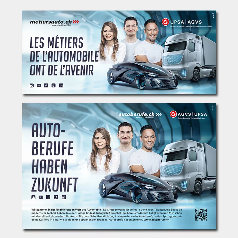 Für seine Mitglieder stellt der AGVS unterschiedliche Werbemittel und -formate zur Verfügung. Diese unterstützen die Garagisten unter anderem dabei, junge, motivierte Leute für einen Autoberuf zu begeistern.